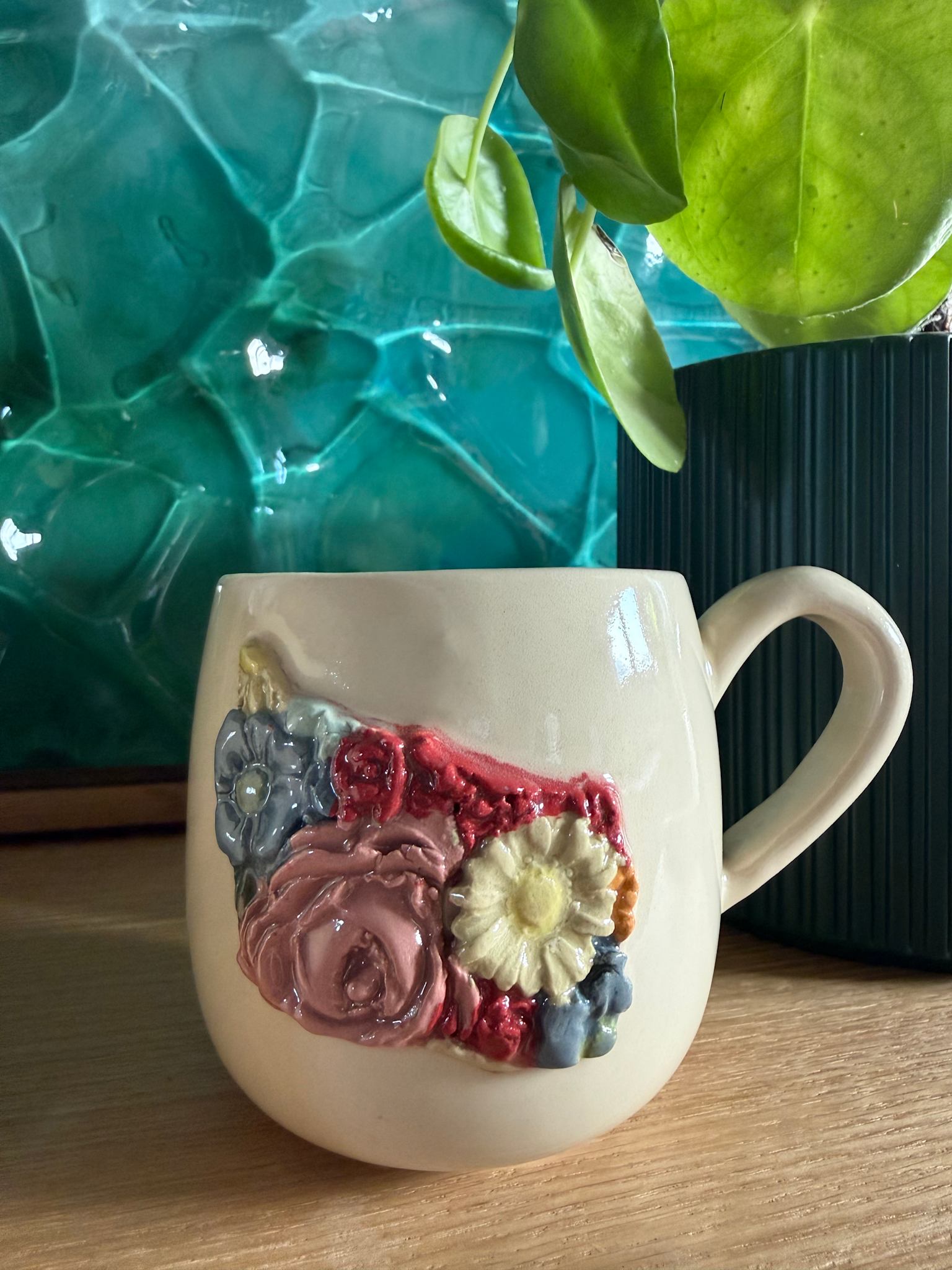 OBS: Blomsterne og farvesammensætningen af dem på Bornholm er unikke for hver kop.